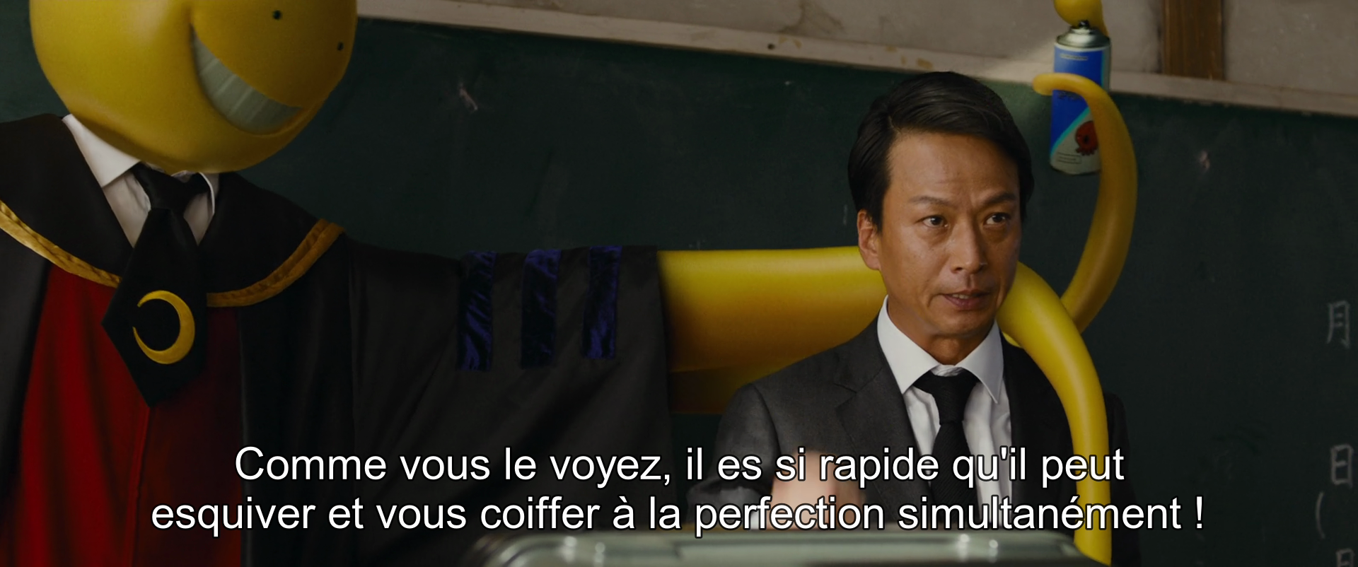 C’est très bien filmé, on est pas devant un film Japonais « WTF » frisant la débilité, mais devant une adaptation d’un animé qui s’est donné les moyens (petits sûrement) de ne pas ridiculiser Koro-sensei et ses élèves.