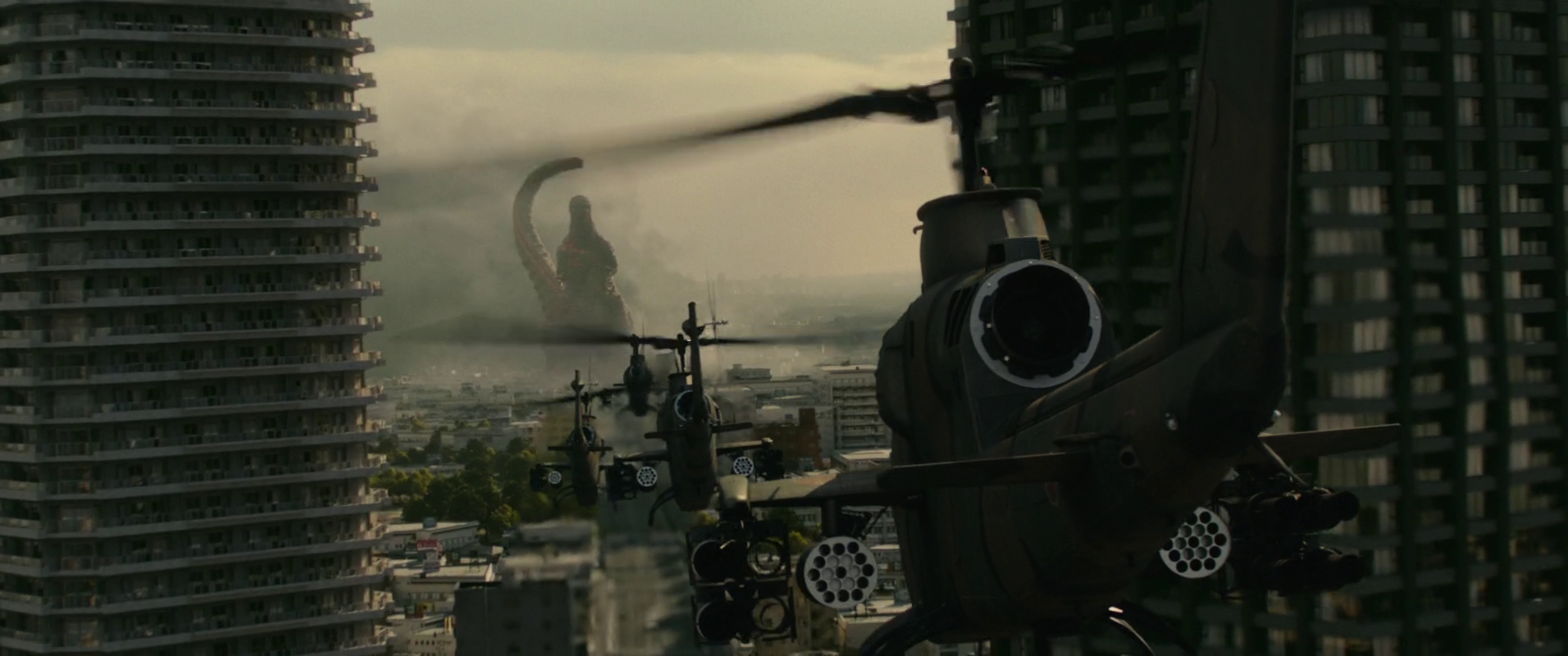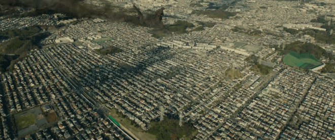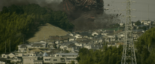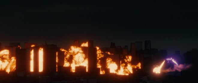 Mais Godzilla s’en moque, lui il avance pas après pas, quartier après quartier, et c’est pas quelques explosions qui vont l’arrêter.