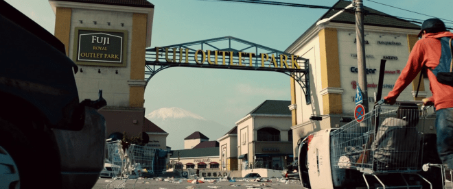 Le chemin va les mener vers un centre commercial près du Mont Fuji.