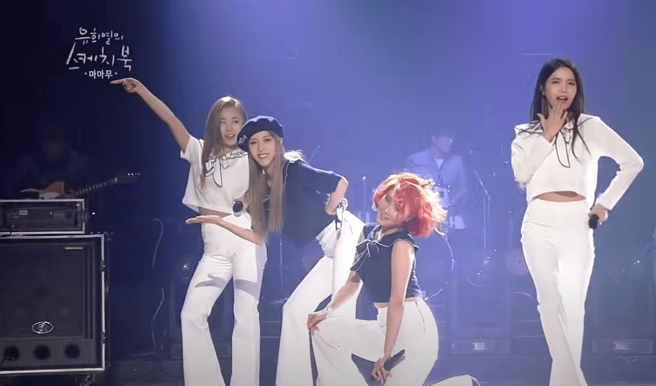 1. Mr. 애매모호 | Mr. Ambiguous ⏩ 140815 Yoo Heeyeol’s Sketchbook Ep.238 2. 음오아예 | Um Oh Ah Yeh ⏩ 150710 Yoo Heeyeol’s Sketchbook Ep.281 3. Mr. 애매모호 | Mr. Ambiguous ⏩ 150710 Yoo Heeyeol’s Sketchbook Ep.281 4. Pure Girl Group Medley ⏩ 160304 Yoo Heeyeol’s Sketchbook Ep.309 5. 넌 is 뭔들 | You’re the best ⏩ 160304 Yoo Heeyeol’s Sketchbook Ep.309 6. 1cm의 자존심 | Taller than You ⏩ 160902 Yoo Heeyeol’s Sketchbook Ep.333 7. 음오아예 | Um Oh Ah Yeh ⏩ 160902 Yoo Heeyeol’s Sketchbook Ep.333 8. 데칼코마니 | Decalcomanie ⏩ 161112 Yoo Heeyeol’s Sketchbook Ep.341 9. Girl Group Medley (10 Minutes + One More Time + Crazy) ⏩ 161112 Yoo Heeyeol’s Sketchbook Ep.341 10. MAMAMOO Medley (Piano Man + Mr. Ambiguous + AZE GAG + Decalcomanie + Um Oh Ah Yeh) ⏩ 170624 Yoo Heeyeol’s Sketchbook Ep.370 11. 나로 말할 것 같으면 | Yes I Am ⏩ 170624 Yoo Heeyeol’s Sketchbook Ep.370 12. 너나 해 | EGOTISTIC ⏩ 180721 Yoo Heeyeol’s Sketchbook Ep.402 13. 별이 빛나는 밤 + Havana | Starry Night + Havana (Original by. Camila Cabello) ⏩ 180721 Yoo Heeyeol’s Sketchbook Ep.402 14. 별이 빛나는 밤 | Starry Night ⏩ 190104 Yoo Heeyeol’s Sketchbook Ep.425 15. Wind Flower ⏩ 190104 Yoo Heeyeol’s Sketchbook Ep.425 16. 고고베베 | gogobebe ⏩ 190315 Yoo Heeyeol’s Sketchbook Ep.434 17. 쟤가 걔야 | WAGGY ⏩ 190315 Yoo Heeyeol’s Sketchbook Ep.434 18. HIP ⏩ 191122 Yoo Heeyeol’s Sketchbook Ep.468 19. I Miss You ⏩ 191122 Yoo Heeyeol’s Sketchbook Ep.468 20. AYA ⏩ 201106 Yoo Heeyeol’s Sketchbook Ep.516 21. 딩가딩가 | Dingga ⏩ 201106 Yoo Heeyeol’s Sketchbook Ep.516 22. 00s’ Dance Medley (Sorry, Sorry + Tell Me + Roly-Poly + Abracadabra) ⏩ 210604 Yoo Heeyeol’s Sketchbook Ep.544 23. Where Are We Now ⏩ 210604 Yoo Heeyeol’s Sketchbook Ep.544
